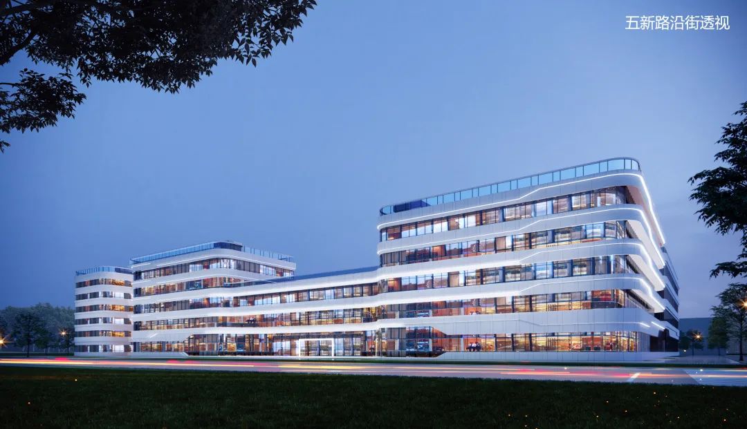 本项目设计,源于总公司华兴源创(股票代码:688001)一期、二期设计元素,通过可塑、圆润的体量相互聚结、溶合,创造出连续而共同进化的形体,特别是转角由连续曲面取代了尖锐形态,结合铝板的材料质感,形象的塑造出了灵动的有机体形态,体现了华兴建筑自由化、现代化和整体化的风格语言,即传递了华兴的企业文化,更塑造出了总公司统一的对外形象。