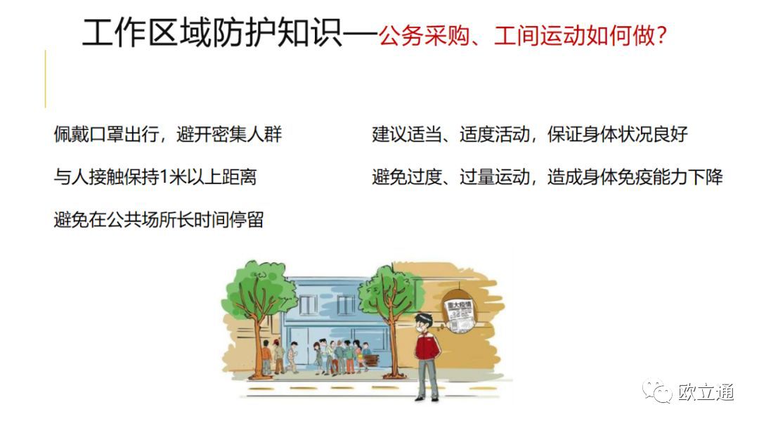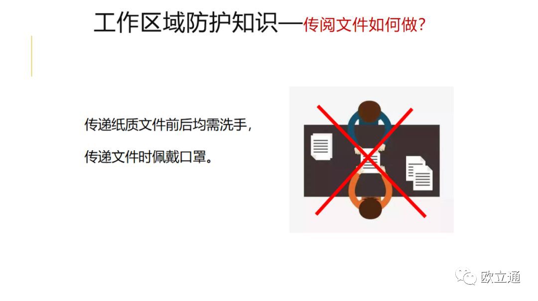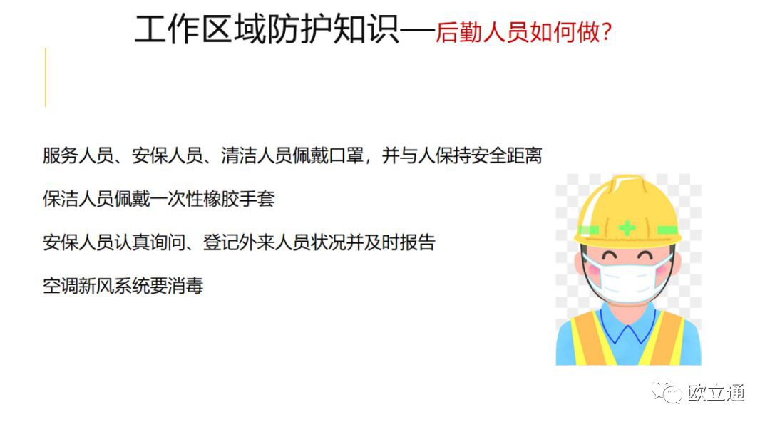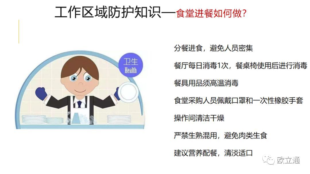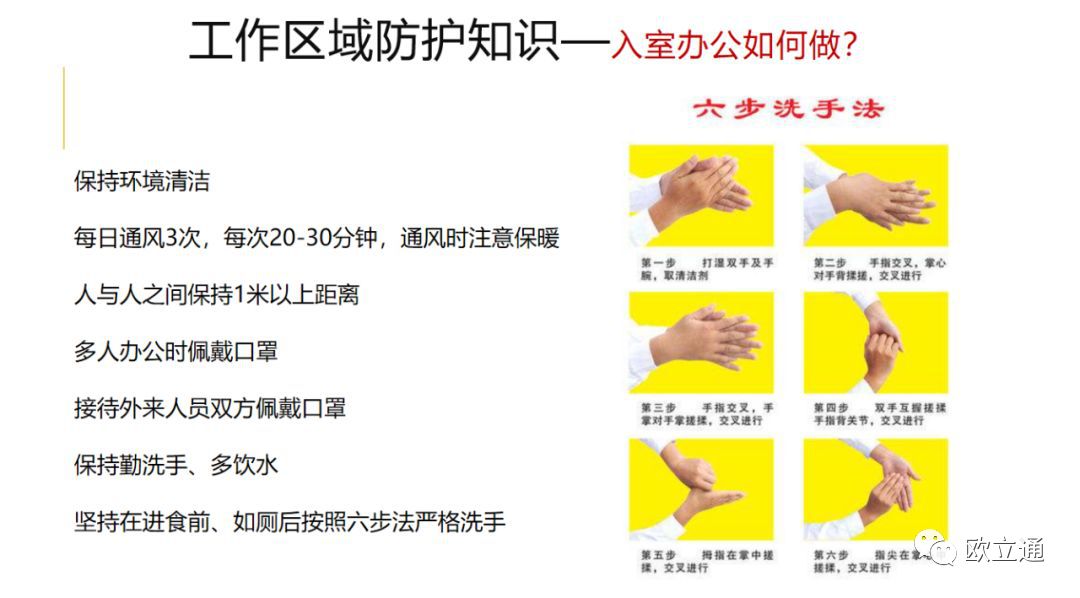 复工后办公场所怎么做好防控措施?专家表示,因办公场所人员较多,建议员工佩戴口罩。办公场所的工作人员应尽量减少集体面对面讨论,减少集中聚餐。办公场所的电梯按钮、门把手、手动水龙头等应重点消毒。一起来看复工注意事项:
