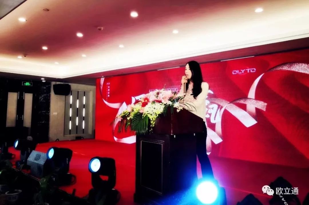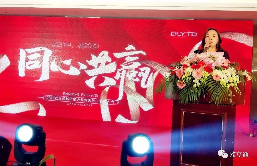 公司总经理李齐花代表欧立通全体员工对参加庆典的各位嘉宾表示热烈的欢迎,向长期关心和支持欧立通发展的各界朋友表示诚挚的谢意,并向全体员工及家人表达了真挚的问候。她感谢大家过去一年里的辛勤付出与理解,很多身在一线的员工,心系大局,放弃节假日,夜以继日的奋战在岗位上,感谢你们!2019年,我们一次次刷新记录,得到了政府及社会各界的支持,也得到了科创第一股华兴源创抛出的橄榄枝。站在新的起点上,让我们携手共进,共同展望2020年的奋斗目标和发展蓝图,我们坚信,新的一年,新的起点,新的耕耘,必将通过全体同仁的共同努力,使欧立通实现新的飞跃,开创新的辉煌!